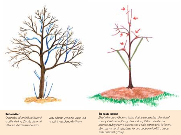 Udržovací řez, řez mladé jabloně - řez dřevin (FISKARS)
